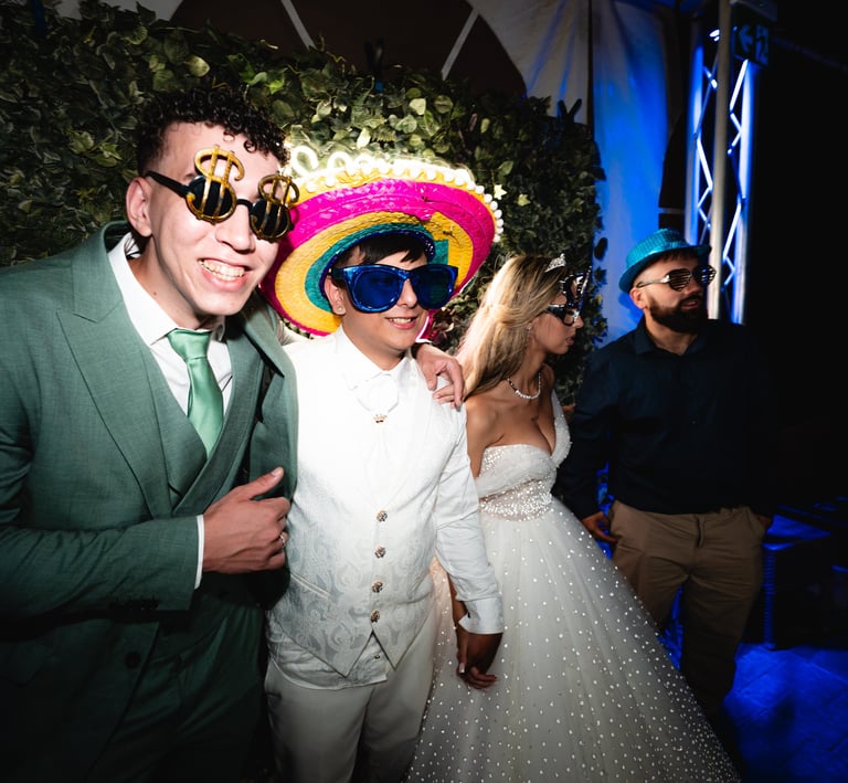 El fotomatón añadió un toque elegante y moderno a nuestra boda dorada.